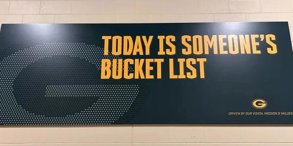 At Lambeau Field, home of the Green Bay Packers, there is a sign hanging in the lower concourse between the locker room and the field that reads, "Today is someone's bucket list."
